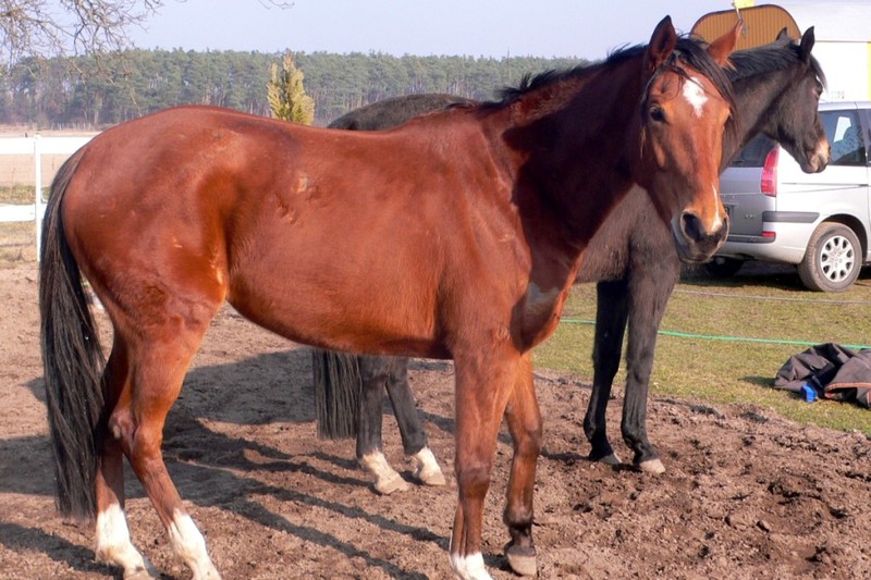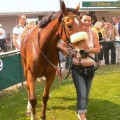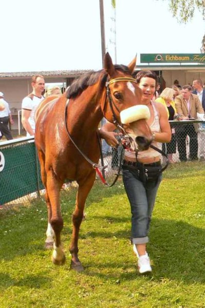 Durch den Herdenkontakt und Weidenhaltung veränderte sie sich schnell und zeigte wieder vollen Einsatz im Rennsport.