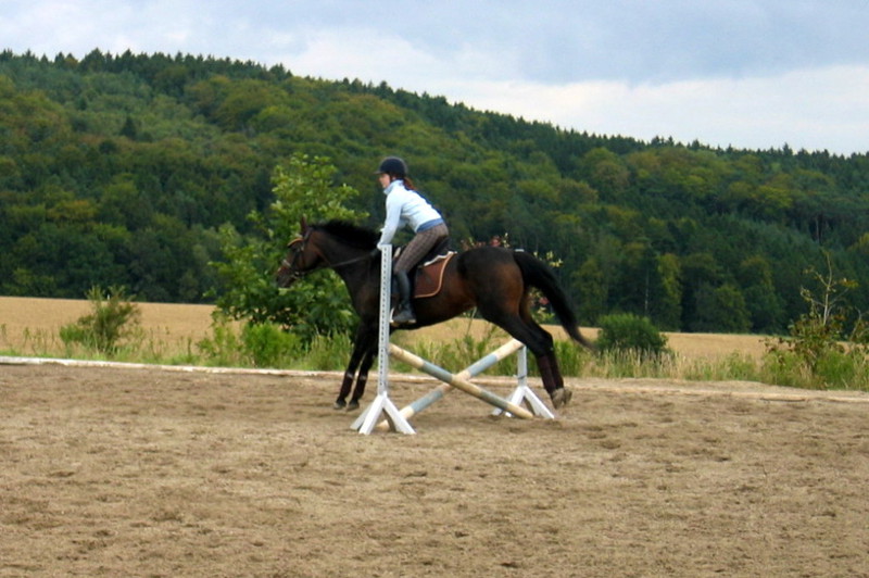 Bald wurde sie auch von mir regelmäßig bewegt, geputzt und gefüttert. Außerdem ging sie bald bei Ausritten als Handpferd (nur am Halfter) mit. Egal ob Schritt, Trab oder Galopp. Es gab nie