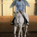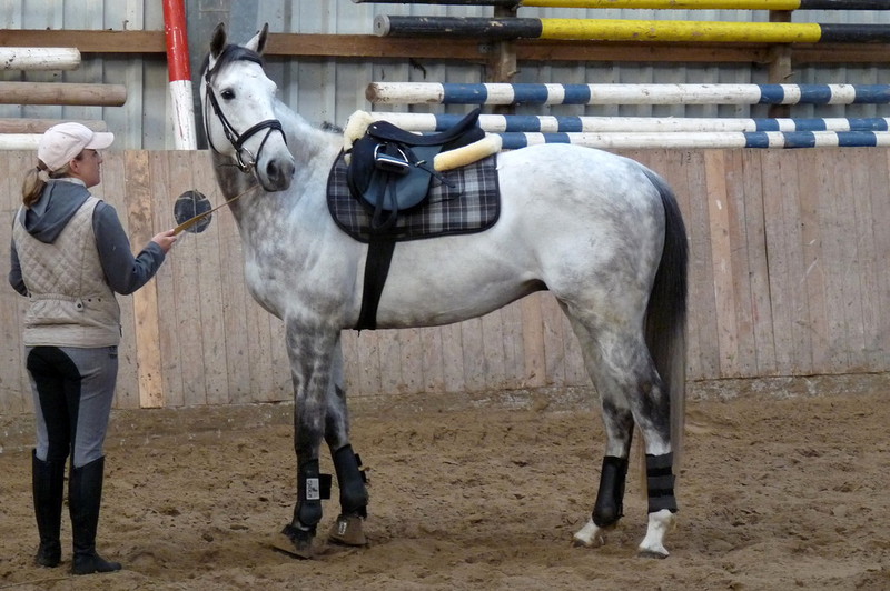 Also beschloss ich, dass wir uns erstmal kennenlernen und er im Wesentlichen Muskulatur & Vertrauen aufbauen muss. Das hieß im Klartext: Spaziergänge bis zum Umfallen, Longieren über Stangen, Bodenarbeit, Gymnastik an der Hand, bis ich das Gefühl hatte, wir versuchen es nochmal. Das war nach 6 Monaten der Fall.