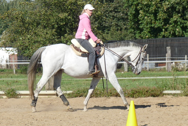 Tino entwickelte sich nach und nach von einem skeptischen zu einem mutigerem Pferd. Vom Boden vertraute er mir vollständig, vom Sattel aus musste ich ihm erst beweisen, dass ich ihm kein Unrecht tun würde, bevor wir überhaupt mit der Arbeit beginnen konnten.