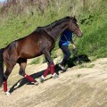 Ich habe sehr, sehr lang überlegt, konnte nachts nicht schlafen, zerbrach mir den Kopf und war des öfteren zum Probereiten da, redete mit den verschiedensten Tierärzten, die alle bis auf einen sagten, dass das mit den Karpalgelenken immer so bleiben würde, forschte über diesen Dreaming Turmalin nach, denn gesagt wurde mir, dass er nie lief, was allerdings nicht mit den im Internet gefundenen Reportagen übereinstimmte. Das war und ist mir bis heute aber egal, ob er nun lief oder nicht, denn selbst wenn sie mir gesagt hätten, dass er bereits Rennen lief, hätte ich ihn gekauft.