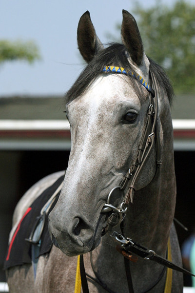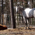 Allerdings hatte ich auch konkrete Vorstellungen: mindestens 1,65 m groß und gesund. Der Sommer verging - kein Pferd in Sicht. Dann schaute mich im Internet ein schicker Schimmel an. Dass er auf dem einen Foto meinem Schimmi etwas ähnlich sah, war auch ein Aspekt, der mich sofort zum Telefon greifen ließ. Leider war die Familie Storp, bei ihnen war er im Training, gerade an dem Nachmittag nicht zu Hause. Am nächsten Tag rief ich wieder an. Gleich am Anfang des Gesprächs sagte mir Herr Storp, dass Eurostern einen Sehnenschaden vorn rechts ein Jahr auf der Koppel auskuriert hatte und die Besitzer nun entschieden hätten, ihn aus dem Sport zu nehmen.