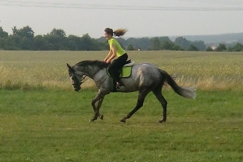 Anfangs stand Sterni in einem Reitstall, kam täglich 5 Stunden auf Koppel und war sowohl im Gelände als auch in der Halle lieb beim Reiten. Wir erzielten