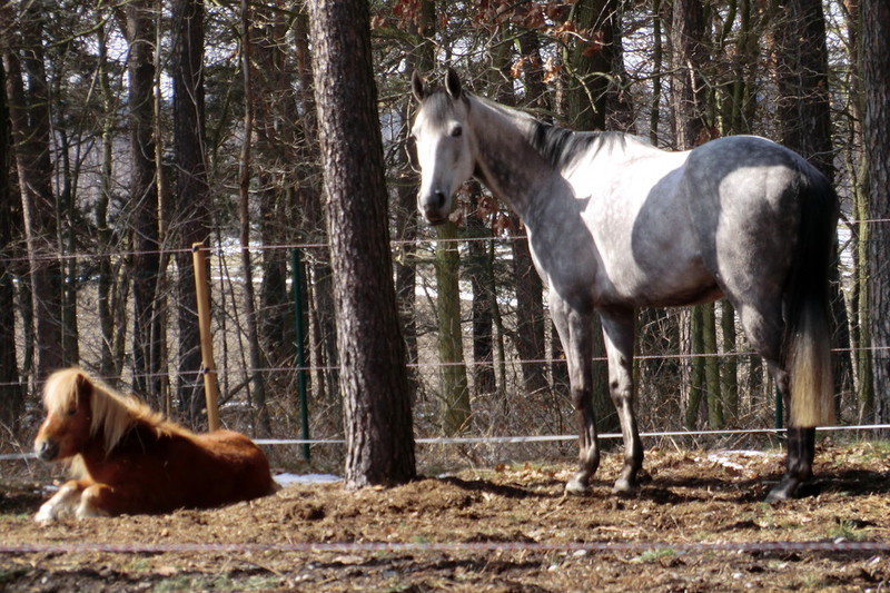 Also holten wir ihn eher als geplant nach Hause. Nun steht er mit seinem Ponyfreund Benny in einer Paddockbox freiem Zugang zu den angrenzenden Koppeln,