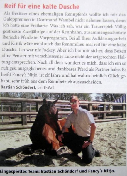 Seit Februar 2009 war Fancy´s Nitjo im Besitz von Bastian Schöndorf, der ihn bereits als Reitbeteiligung pflegte und ihn später gebisslos als Freizeitpferd nutzte. Das Magazin Cavallo veröffentlichte im Juni 2010 sogar einen kleinen Artikel über die beiden (s. Fotos).