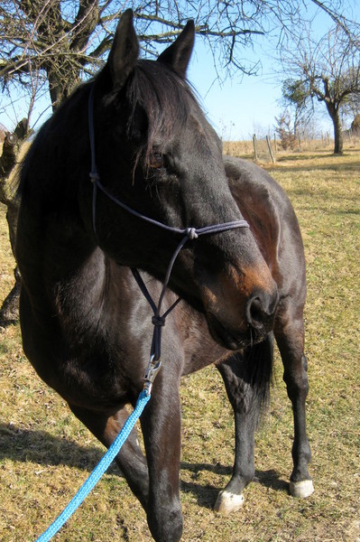 Im Herbst vorigen Jahres haben wir begonnen Reitstunden im klassischen Reiten zu nehmen, alleine auszureiten und im Gelände kontrolliert zu galoppieren. Seit einem Jahr reiten wir gebisslos, entweder mit dem LG-Zaum oder mit dem Trainingshalfter von Monty Roberts.