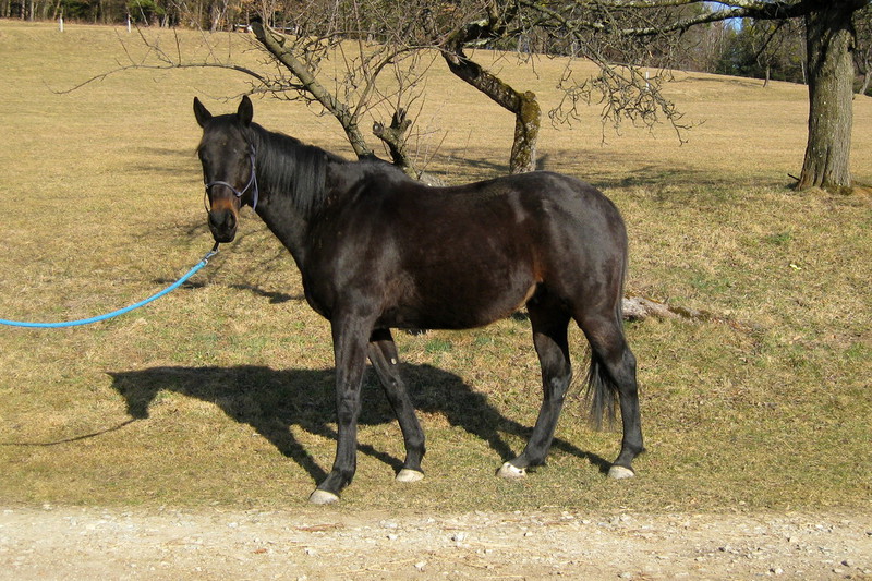 Als ich Feliciano 2009 kaufte, stand er bereits seit einem Jahr auf der Weide in der Südsteiermark. Meine Erfahrungen mit Pferden waren noch sehr beschränkt. Ich hatte damals vor ca. 4 Jahren das Reiten erlernt und war seit ca. 2 Jahren Mitreiterin eines Trakehner Wallachen, der sehr temperamentvoll und aufgrund seiner Vorgeschichte nicht einfach zu handeln war.