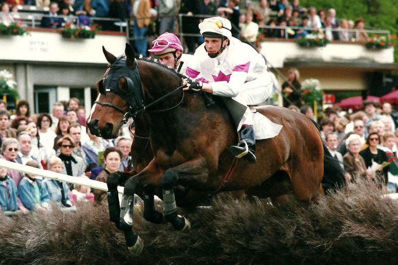 einige Monate nach England zurückzukehren. Hier startete er 1991 auch erstmals über Hürden, verlor dabei aber seinen Reiter („UR - unseated rider“).