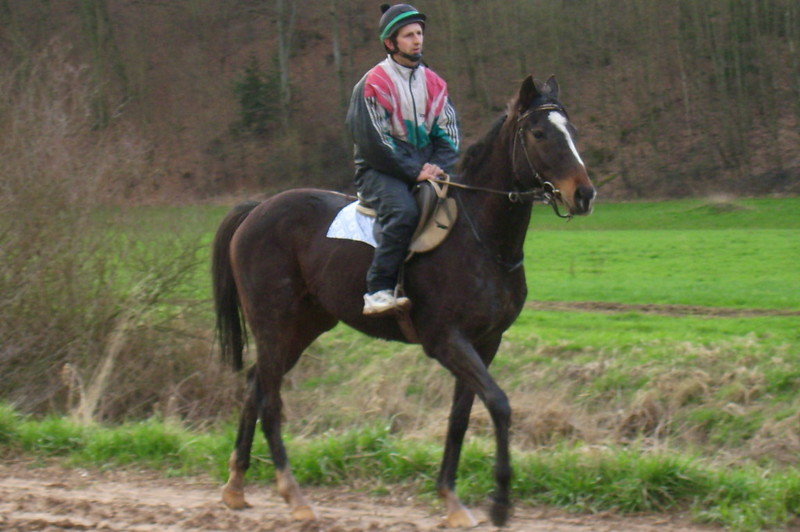 Auch meine Besitzer bedanken sich ganz herzlich bei Emiliano Vicoli und Hans Kissel, dass sie den Mut hatten, mich im Training zu reiten, und es auch geschafft hatten, dass wir zusammen schöne Erfolge feiern konnten. Bei Hans hatte ich es jedoch nicht geschafft, ihn in den Dreck zu setzen.