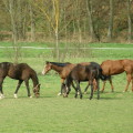 Jetzt bin ich fast den ganzen Tag auf der Koppel, passe auf die Pferdekinder auf, und habe zusammen mit Sea Empress (auch ein Dashing Blade Sohn) zeitweise mit den rossigen Stuten zu kämpfen. Gesundheitlich bin ich noch fit.
