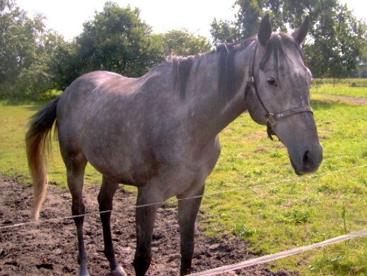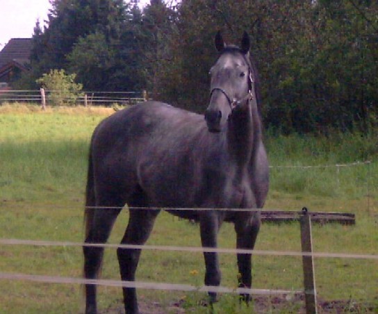 Aber sie wollten meine Zustimmung für das Pferd, da ich es im Training reiten sollte, wenn es nicht beim Trainer stand. Mir wurde ein etwas bauchiger, total zotteliger Rappschimmelwallach