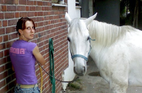 Als sie dann wieder bei uns war, war sie leider sehr ängstlich und ließ kaum jemanden an sich heran. Wir gaben ihr Zeit sich zu erholen - und wir beide schlossen sehr schnell Freundschaft. Da ich Ille immer schon sehr mochte, war es relativ einfach mit ihr klar zu kommen. Ich musste mit ihr wieder von ganz unten anfangen, erst ein wenig putzen, dann spazierengehen, bis sie mir dann soweit vertraute, dass ich ihr wieder einen Sattel auflegen durfte - wobei das auch sehr schwierig war, da sie extremen Sattelzwang hatte. Aber es klappte, irgendwann ließ sie mich aufsteigen und ich hatte es geschafft.