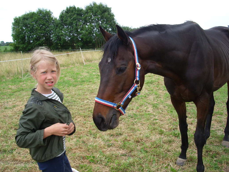 Vor 3 Monaten haben wir uns dann noch eine Oldenburger Stute gekauft und er ist seitdem sehr verliebt. Den Macker macht er natürlich immer noch (dem einen Pony hat er ein ganzes Stück aus dem Hals gebissen, so dass der Arme genäht werden musste) - aber es macht so viel Spaß mit ihm umzugehen. Wir haben auch schon 2x versucht einen Ausritt mit den beiden Großen zu machen, aber leider hat Ingenious noch nicht verstanden, dass er nicht galoppieren soll und ich hatte echt zu kämpfen. Beim ersten Mal sind wir nach kurzer Zeit umgedreht, denn es wurde einfach zu gefährlich, er bockte, stieg und schlug wie wild aus. Ich nehme aber mal an, es lag an den Bremsen. Er ist also entschuldigt. Beim 2ten Mal haben wir uns einer Gruppe Ponyreiter angeschlossen. In der Gruppe zu reiten ging gar nicht, vorne schon besser aber er hat natürlich immer versucht abzuspringen. Ich habe versucht mich zu entspannen, und die Zügel locker zu lassen aber natürlich half nicht viel. Das letzte Stück sind wir dann getrabt und er ließ sich gut händeln. Wir haben aber trotzdem beschlossen, erst nächstes Jahr wieder mit ausreiten zu starten, dann aber regelmäßiger. Witzig war nur, dass ihn Dinge wie Flaggen, spielende Kinder, Plastiktüten etc. überhaupt nicht interessieren. Die Stute war da schon anders, naja, Reitpferd eben.