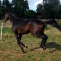 Wir haben dann aus der Not eine Tugend gemacht und ich habe mich immer an sie rangehängt, um zu galoppieren und siehe da, er tat es. Da er ja keine Galopphilfe im herkömmlichen Sinne kannte, brachte ich es ihm dann übers schnellere Traben bei. Mittlerweile galoppiert er mit ganz feinen Hilfen auf beiden Händen im richtigen Galopp an und auch ein Zirkel schockt ihn nicht mehr. Was putzig war, dass er immer, wenn er etwas nicht verstand, die Ohren anlegte und einfach stehen blieb. Das war mir allemal lieber als einer, der bockt oder abgeht. Er hat super Gänge, einen herausragenden Schritt und echte Lust zu arbeiten. Seit 4 Wochen füttere ich Magnesium und sein Nervenkostüm ist noch besser geworden.
