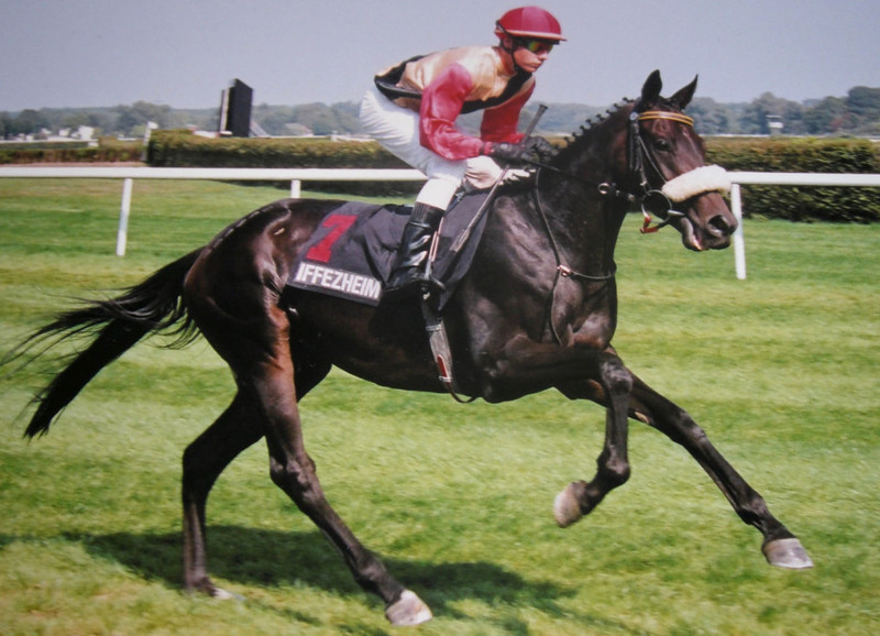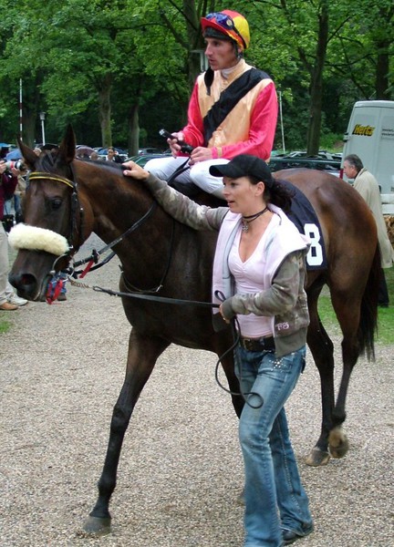 Kara kam als 3 jährige Stute zu uns in den Rennstall. Schon immer extrem kindlich und bis heute nicht richtig erwachsen geworden. Sie kam mit dem Leben als aktives Rennpferd nicht zurecht und wir nahmen sie sehr früh wieder aus dem Sport.