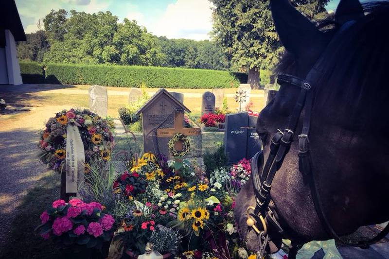 Im Sommer 2018 verliess uns Franz relativ unerwartet und ich war mir sicher, King Falcon würde ihm folgen. Um ihm die Entscheidung zu gehen nicht ganz so einfach zu machen, habe ich mich in einem Anfall von Sentimentalität nochmal drauf gesetzt. Erst nur in der Box auf den nackten Rücken – ich habe eine halbe Stunde in seine Mähe geplärrt, während er zufrieden sein Heu frass. Als dann eine Freundin mir ihren Sattel mit den Worten „der passt ihm sicher“ aufdrängte und zu meiner grössten Überraschung wohl auch ein Masssattel nicht besser gesessen hätte, habe ich alle Röntgenbilder in meinem Kopf kurz zur Seite gewischt und mich darauf verlassen, dass mein Pferd mir schon Bescheid gibt, wenn etwas nicht stimmt. Ich habe gesattelt, mich drauf geschwungen und bin nach acht Jahren einfach losgeritten. Also nein… geritten ist falsch. Ich habe gesattelt und mich draufgesetzt, die Zügel auf den Hals gelegt und mein Pferd entscheiden lassen, ob und wie weit er gehen möchte. So sind wir in den letzten 2,5 Jahren ein paar Mal im Schritt die kleine Rentnerrunde einmal ums Feld gegangen… manchmal inklusive Besuch auf dem Friedhof bei Franz, diese Entscheidung übernimmt der Herr Pferd immer selbst.