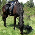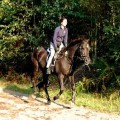 King Falcon ist im ganzen Stall als absolutes Verlasspferd bekannt, er (er)trägt kleine Kinder, gibt sich im Rahmen seiner (und meiner) Möglichkeiten viel Mühe in der Dressur, und macht so ziemlich alles mit, was man von ihm verlangt. Immer wieder sorgt er für Gelächter mit seiner Nervenstärke: wenn andere Pferde beim Anblick einer Peitsche schon los laufen, dann lässt er sich buchstäblich davon einwickeln und schaut mich mit großen Augen an, was ich denn von ihm will. Schwerpunktmäßig sind wir im Gelände unterwegs, wir haben phantastische Reitwege unmittelbar vor der Tür.