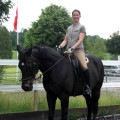 Wir haben also angefangen, aus einem Rennpferd ein Freizeitpferd zu machen und ich habe Unterricht genommen. Das Rennpferd hat sich anfangs noch häufiger gezeigt, als es mir lieb gewesen wäre, zweimal hat er wohl die Meile mit mir gemacht und mich zum Copiloten degradiert. Grundsätzlich aber ist er unglaublich gelassen, gelegentlich fast ein bischen phlegmatisch. Dabei allerdings immer leistungsbereit und bemüht, es dem Reiter recht zu machen.