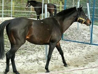 Seit Ende 2006 war ich erneut auf der Suche nach einem Pferd. Von der Bahn sollte es sein, vorzugsweise Hengst und - am liebsten ein dunkles Pferd. Über diese Suche hinaus gründete ich im Mai 2007 die Vollbluthilfe, ohne jedwedes Konzept, nur mit dem Gedanken, die Mißstände rund um das englische Vollblut ein bisschen besser zu machen. Lac Royal kam dann Ende September 2008 zu mir. Er hatte eine lange gemütliche Auszeit bei seiner Vorbesitzerin genossen, die leider viel zu wenig Zeit für ihn hatte. Lucky fordert seine Bewegung ein, Tag für Tag. In der ersten Woche, war er nach 5 Minuten scheuchen schon komplett groggie. Inzwischen sind wir bei durchschnittlich einer 3/4 Stunde harter Arbeit angekommen und Lucky ist nicht kaputt zu bekommen. Er dreht dann erst richtig auf. Meine RB und ich sind jedoch am Ende und geben auf. 4 Beine sind halt doch vorteilhafter als 2.