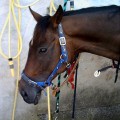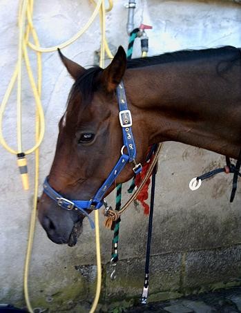 Gekauft habe ich ihn im April 2006 von einem Pferdehändler in Gaudernbach. Lo Fino kam damals direkt von der Rennbahn in Köln - er hatte auch ziemlich hohe Preise erzielt. Seine Arthrose vorne links beendete seine Karriere - er war ein wahrer Pechvogel, aber ein wundervolles Pferdchen. Ich habe ihn dann erstmal aufgepäppelt, da er in einem sehr schlechten Zustand war. Er durfte sich eine ganze Weile auf der Weide erholen, bevor ich langsam anfing, mit ihm zu arbeiten.