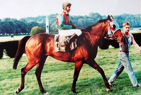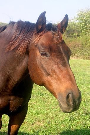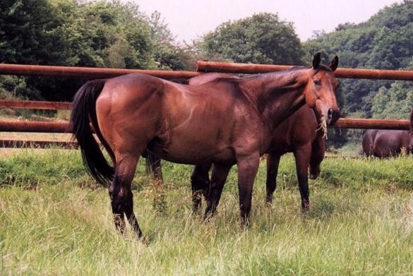 Im Mai 1998 übernahmen wir Macedon von privat- als nicht mehr reitbares Pferd, da schwer zu händeln. Dort stand er überwiegend in Boxenhaltung mit wenig Koppelgang drei Jahre nach seiner Rennkarriere.