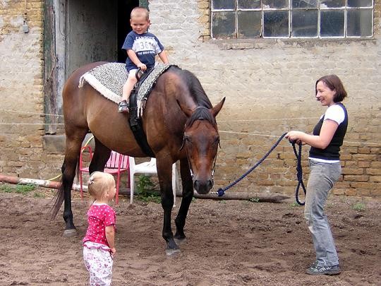 Trotz seines Alters von 22 Jahren verhält er sich beim Reiten wie ein 6jähriger, und „fragt" auch heute noch, ob er galoppieren darf.