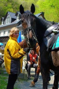 Problem. Dafür erkundet sie liebend gern neue Wege, am liebsten in fremden Gelände. Jährlicher Höhepunkt ist der Reichswaldritt, ein 3-Tages-Wanderritt am Niederrhein, wo täglich ca. 50 km