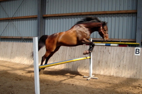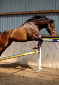 Nach einigen anfänglichen Schwierigkeiten ist er zu einem verlässlichen und treuen Freizeitpartner geworden, der heute sowohl in der Dressur, als auch im Springen eingesetzt wird.
