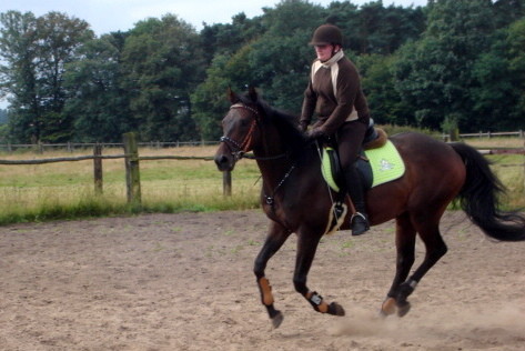 Monster wird heute von meinem Verlobten und mir vor allem dressurmässig geritten, macht im Winter Freispringen und im Sommer kleine Sprünge mit mir. Und auf unsere Galoppbahn gehen wir auch wieder