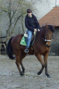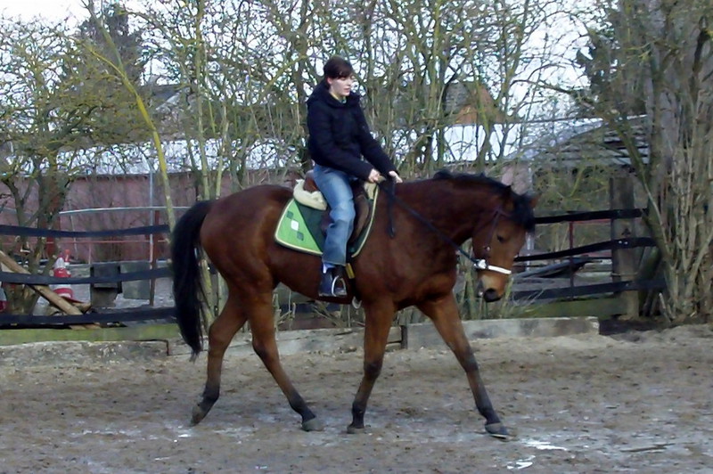 Reiterlich ist er ein Traum, den man am kleinen Finger reiten kann (wenn man weiß wie), die typische Rennpferdehektik kommt nur selten durch, er ist Gelände und Straßensicher, er liebt Kinder und stört sich weder an vorbeifahrenden Zügen, noch an Hunden, die um ihn herumspringen. Nur eins mag er nicht - Handyklingeln oder Handymusik, da versucht er mir heute noch auf den Arm zu springen.
