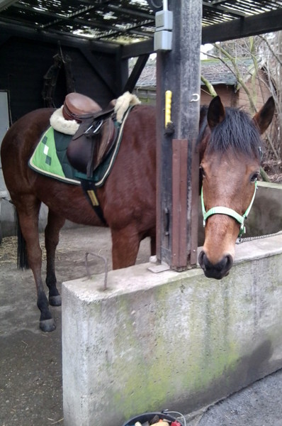 Ich bin ihn nicht probegeritten, ich hab nur seine Beine angeschaut und wir haben das Geld auf den Tisch gelegt, Hauptsache dieser furchtbar traurig guckende Kerl steht bald in meinem Stall.