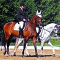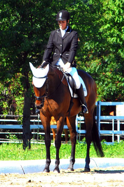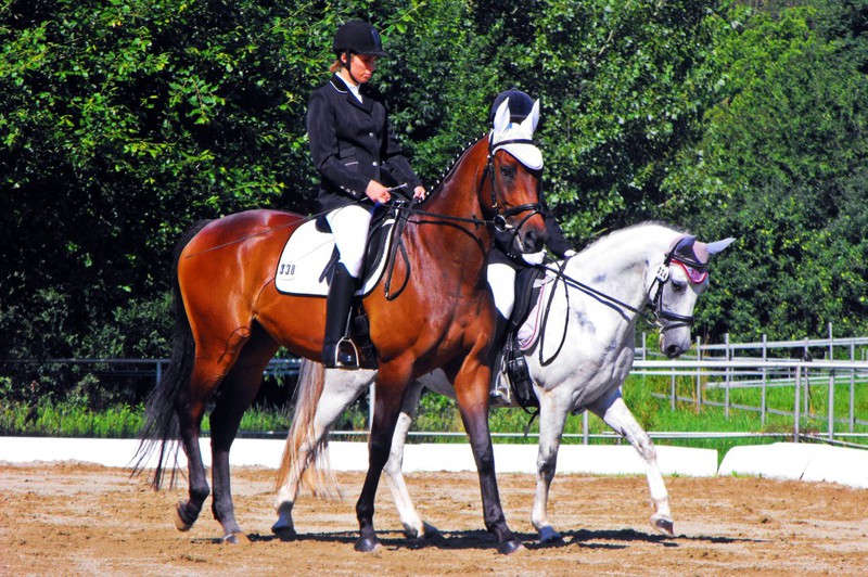 Ende 2009 brachte mein Vater ihn wieder zu mir nach Iffezheim. Dort stellte ich ihn in in den Reitstall an der Rennbahn und begann mit seiner Ausbildung zum Dressurpferd. Im August 2010 habe ich zum ersten Mal auf einem Turnier vorgestellt. Er zeigt sich ruhig, ausgeglichen und nervenstark, präsentierte sich, als hätte er nie irgendetwas anderes gemacht!