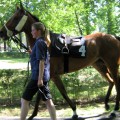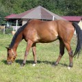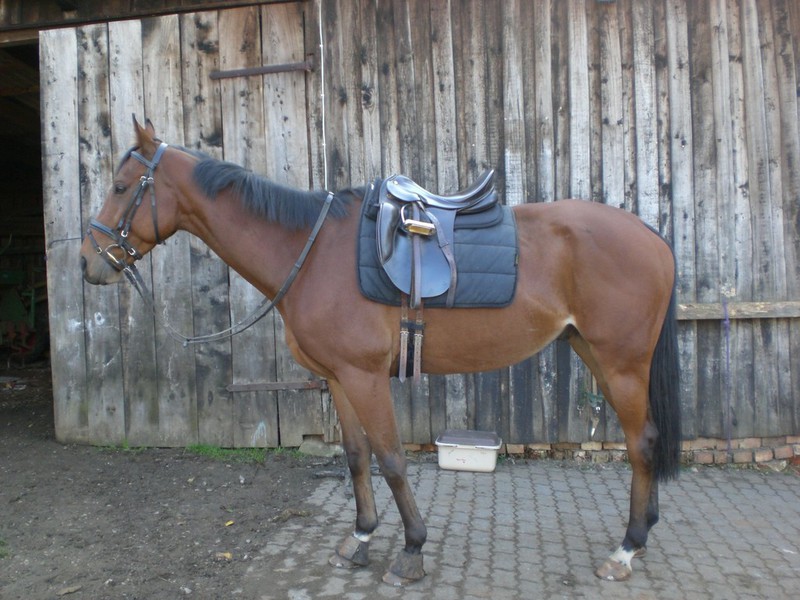 Und obwohl ich nicht ernsthaft auf der Suche nach einem Pferd war, entschied ich mich, ihn zu mir zu nehmen. Im Juli 2007 zog Perucci also von Hoppegarten, wo er während der Saison trainiert wurde, zu mir nach Franken. Perucci kannte das Leben im Reitstall sowie Reiten im Gelände, auf einem Reitplatz und auch Longieren schon von seiner Vorbesitzerin, die ihn außerhalb der Saison immer nach Hause holte.