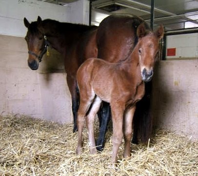 Das Fohlen sollte den gleichen Vater wie Proudswing (mehrfache, internationale Gruppesiegerin und Verwandte zu Proudashi) bekommen. Im November 2006 wurde sie dann auf das Gestüt Etzean gebracht, wo sie im Frühjahr 2007 von Dashing Blade gedeckt wurde. Am 28.01.2008 kam ein ganz toller, kleiner Hengst zur Welt. Er ist unheimlich schön und hat einfach alles, was ein Rennpferd haben sollte. Mein ganzer Stolz.