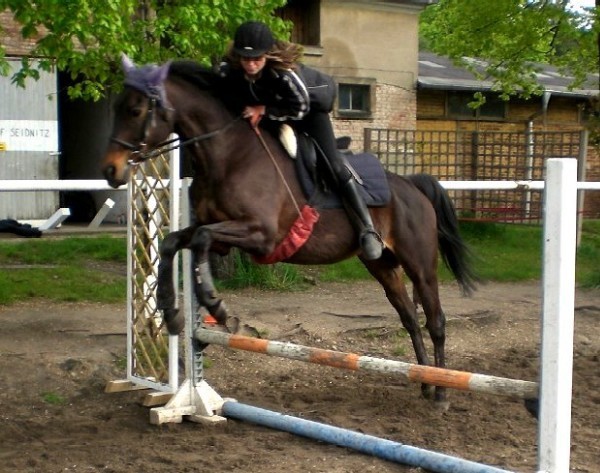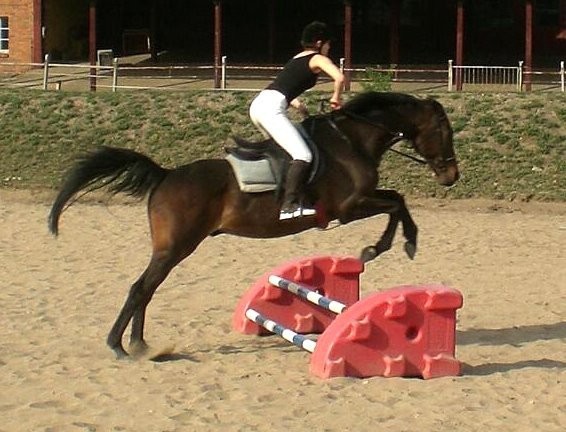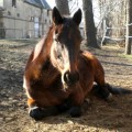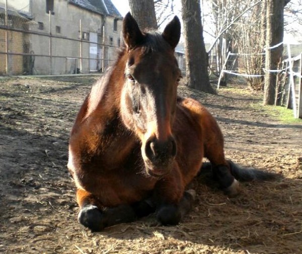 Nach 8 Wochen ging er lahmfrei und entwickelte sich zu einem absolutem Verlasspferd für Anfänger, mit denen er auch am langen Zügel auf mein Kommando langsam seine Runden galoppiert. Leider senkt sich sein Rücken immer mehr, er ist schliesslich schon 2-jä. Rennen gelaufen, und es ist schwer, bei ihm Muskeln aufzubauen. Aber solange er munter ist, und auch mal schnell die Sandbahn galoppieren will, kann es ihm nicht so schlecht gehen. ;-)