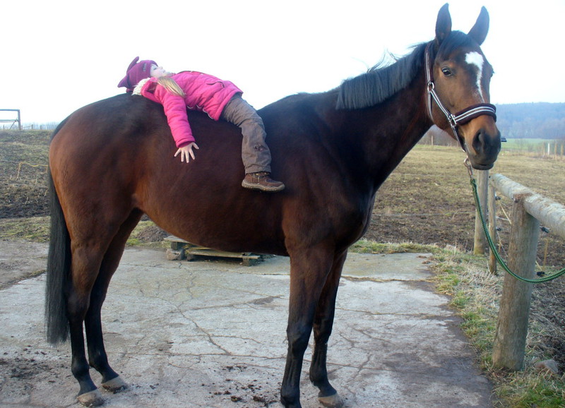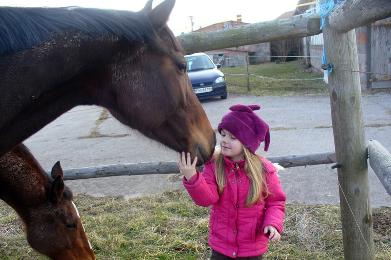 Nach ein paar Telefonaten mit dem Besitzer bin ich 3 Tage später nach Hannover gefahren, habe sie gesehen, geritten und gleich mitgenommen. Und ich habe es bis heute nicht bereut. Das war im Juli. Jetzt ist sie fast 4 Monate bei mir und ich muss sagen, sie ist eine tolle Stute - unheimlich lieb, kein Beisser, oder Schläger. Lässt sich sogar von meiner fast 5jährigen Tochter putzen, als ob sie nichts anderes kennen würde.