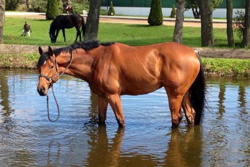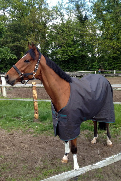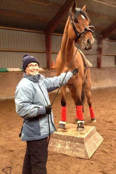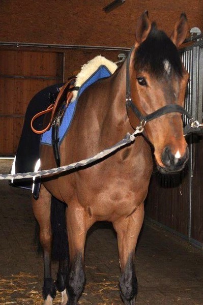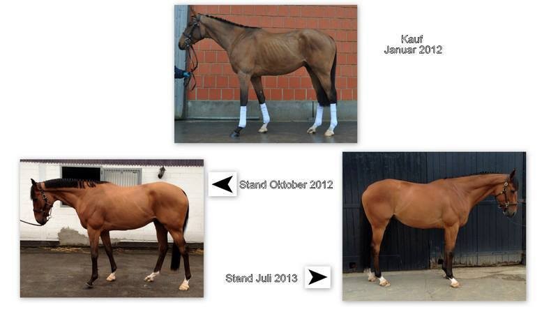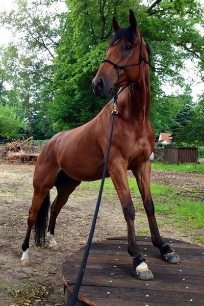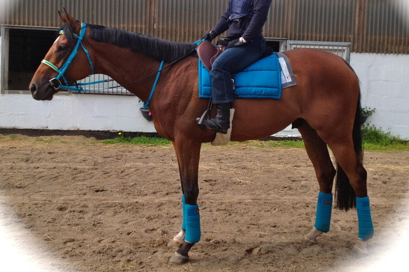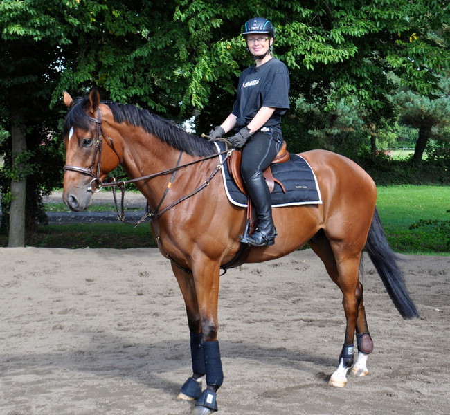 Über Umwege gelangte er zu seiner jetzigen Besitzerin, die sich viel Zeit mit ihm nimmt und den gelehrigen, wenn auch sehr temperamentvollen Wallach zum Reitpferd ausbildet.