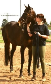 Langsam aber sicher steigert sie ihr Können. Jedenfalls ist sie immer fleißig und möchte alles "richtig" machen. Beim Galoppieren jedoch kommt noch oft das Rennpferd durch. Ich denke, wir brauchen