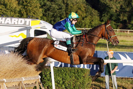 Er absolvierte dann noch 11 Starts, bevor er eine neue Aufgabe erhielt - er wechselte ins Hindernislager. Er absolvierte einen Start, wurde zwar 2ter, doch verletzte er sich schlimm. Er kam lahm und mit Nasenbluten aus dem Rennen. Tag für Tag pflegte ich Ihn bei Schnakenbergs, nachmittags gleich nach der Schule ab zum Stall. Das machte ich solange, bis er eines Tages verkauft werden sollte.