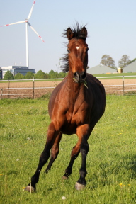 Shirana ist mit ihren 7 Jahren immer noch ein jugendlicher Sportler. Sie strengt sich gerne an, liebt es, steile Berge hochzuklettern oder andere Anstiege und flache Strecken im flotten Galopp zu nehmen. Dabei bleibt sie aber immer händelbar und kann auch gewohnte Galoppstrecken im Spazierschritt gehen oder traben.