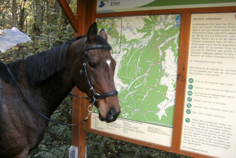 Was ich nun verstärkt trainieren möchte sind Ritte durch Orte, im Straßenverkehr sowie Begegnungen mit größeren Pferdegruppen. Alles Situationen, in denen noch Kopf und Schweif sehr hoch getragen werden. Auch Lautsprecherklänge verwandeln sie noch ein bisschen wieder in das Rennpferd, das sie einmal war. Also werden solche Gelegenheiten nun gezielt zur Gewöhnung und Ausbildung angesteuert.