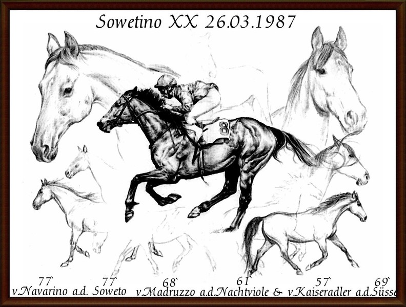 Sowetino wurde als Westernpferd genutzt und auf Rallye´s eingesetzt. Er war ein wahres Verlasspferd und genoss seine wohlverdiente Rente in der Nähe von Köln.
