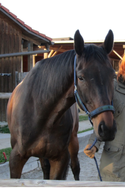 Ausgerechnet die Inhaberin eines Schulbetriebes schenkte ihm eine letzte Chance. Hier wurde er von seiner heutigen Besitzerin entdeckt, die ihm nun in seiner gewohnten Umgebung einen Lebensplatz bietet.