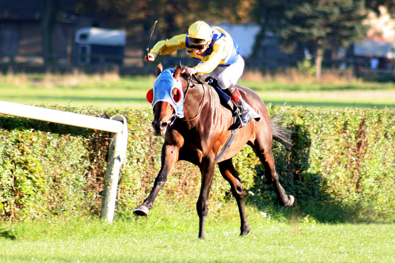 Twingo habe ich im April 2010 direkt aus dem Training gekauft. Er stand bis dahin in Bremen- Mahndorf und lief mehr oder weniger erfolgreich. Ich hatte ihn schon über Jahre bei den Rennen beobachtet und war immer fasziniert von dem harten, hübschen Pferd und als er dann zum Verkauf stand, habe ich zugeschlagen.