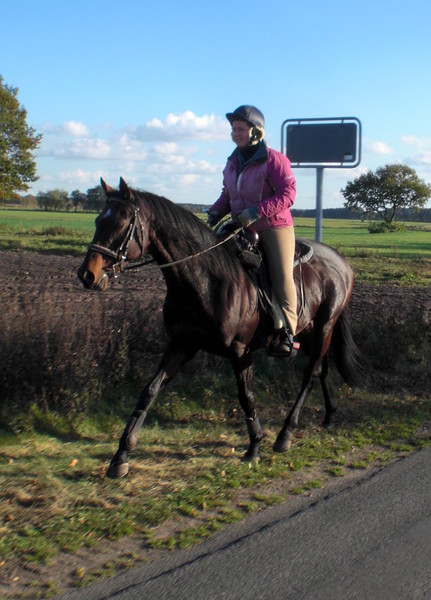 Wir gehen zwischenzeitlich flott und lange ins Gelände, vielleicht probieren wir auch mal einen kleinen Distanzritt oder einen Wanderritt. Außerdem üben wir uns nun auch mehr im freizeitmäßigen