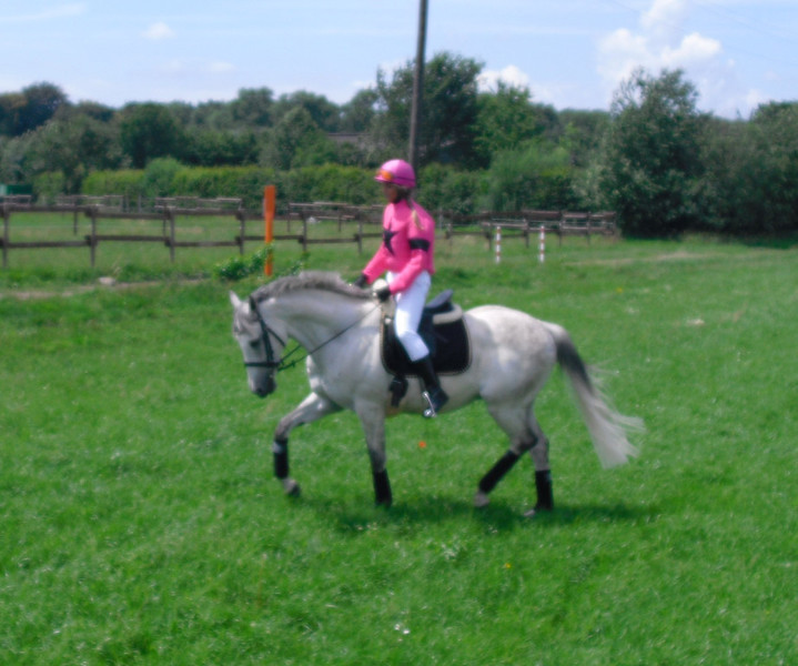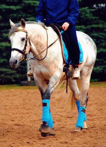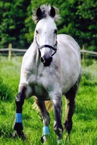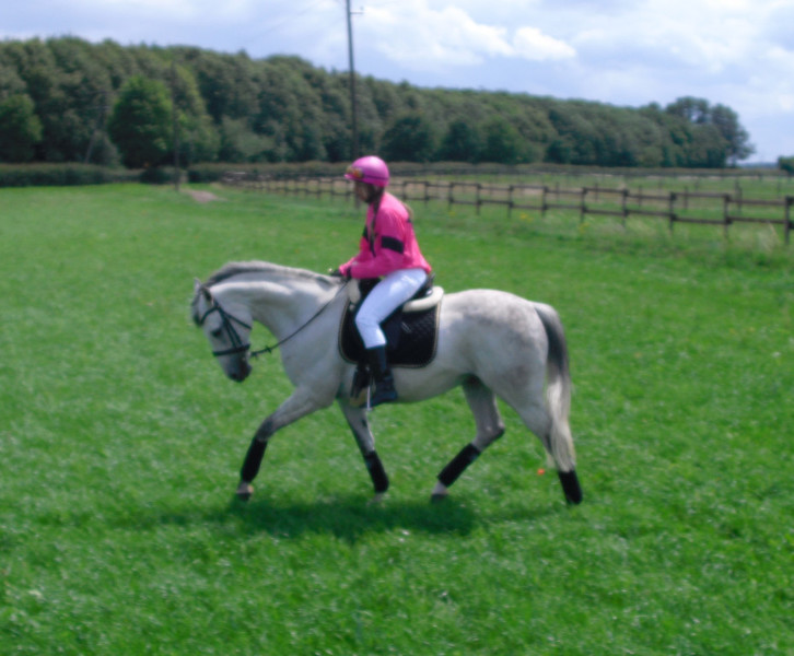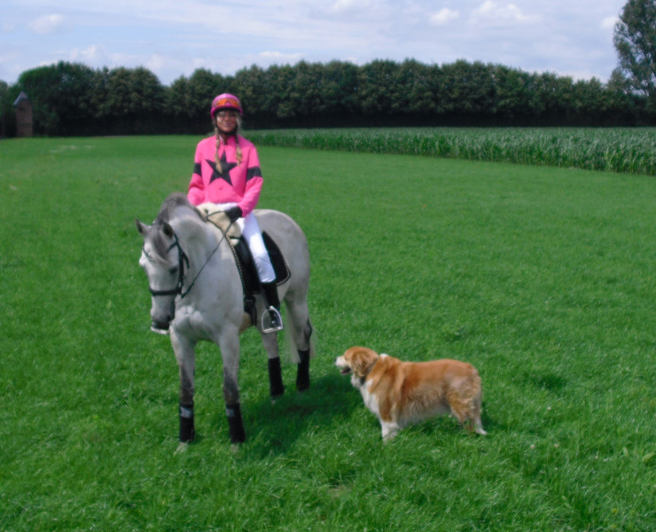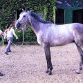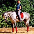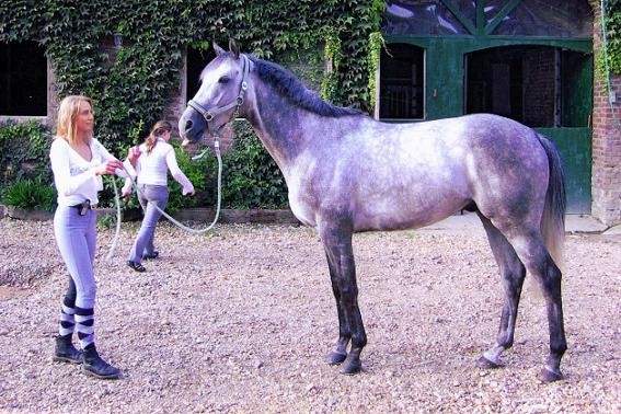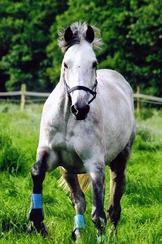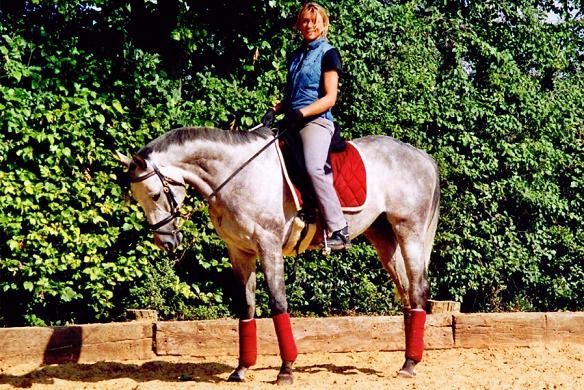 Nach einem guten halben Jahr durfte ich dann mit der Arbeit beginnen. Mit der Unterstützung meines Tierarztes (tausend lieben Dank an Marco Feldmann) bekam ich auch Wasternos Problem im Rücken nach der langen Pause zum ersten Mal in den Griff. Wasti entwickelte sich prächtig. Er war der Liebling im Stall und einfach nur schön. Tja, als es dann soweit war, dass es ums Verkaufen ging, blutete mir schon arg das Herz. Wer sollte mit diesem „rotzfrechen" Schimmel schon klarkommen? Durch eine befreundete Reitlehrerin, die Wasti Spitze fand, meldete sich dann eine junge Frau bei mir. Prompt verliebte sie sich Hals über Kopf in den Schimmel.