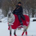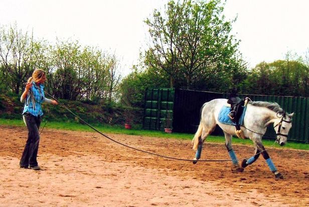In der ersten Zeit hatte Wasti leider in den großen Herden Schwierigkeiten sich unterzuordnen. Ständig musste ich ihn zusammenflicken lassen, an sämtlichen Stellen. Dadurch hatten wir ständig reiterliche Rückschläge. Immer wieder lange Pausen. Durch den Muskelabbau kam das Problem seines schwachen Rücken wieder durch. Das Problem haben leider einige Vollblüter aus dem Rennsport. So fingen wir halt immer wieder neu an mit viel Longieren, um die Rückenmuskulatur zu stärken. Auch Wasternos Sattel habe ich schon zwei Mal ändern lassen. Ich denke aber, dass wir auf Dauer einen anderen Sattel brauchen werden. Das Problem haben wir auch leider bis heute noch. Jedes Mal wenn der Schimmel ans Stehen kommt, fangen wir immer wieder ganz von vorne an.
