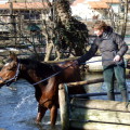Nachdem ich aber schon ein paar Jahre Galopper im Training reite, hat mich eine Freundin gefragt, ob ich mir nicht einmal einen angehenden Galopperpensionist aus ihrem Stall ansehen möchte. Er wäre mit zehn Jahren nun endgültig zu alt und leider ist er auch nicht mehr wirklich rennfit geworden, obwohl ihm nicht grob was fehlt. So haben wir ausgemacht, dass ich ihn ein halbes Jahr pachte und mich dann entscheiden muss, ob ich ihn kaufen möchte oder nicht. Ich gebe zu, dass die Tatsache, dass er mal Galopper des Jahres in Frankfurt gewesen war und so viel gewonnen hatte, mich schon irgendwie gereizt hat und so ein Pferd bekommt man ja auch nicht alle Tage angeboten.