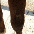 Seit ein paar Monaten hat er einen neuen Ex-Galopper als Koppelpartner, der erste Versuch mit einem Partner hat zu der bösen Verletzung geführt (s.Foto oben), die aber *gottseidank* ohne Folgen